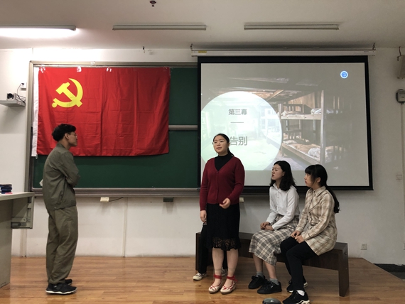 2019年5月26日上午,赤心党建工作坊第六期入党积极分子培训班红色故事会于J3-202顺利举行。本次红色故事会由知行书院辅导员史欣平和赤心工作坊干事们担任评委,到场的还有第六期全体学员。五个小组的同学用红色话剧的形式,在追忆革命志士英勇事迹的同时,为我们带来了一场场精彩绝伦的演出,赢得了台下老师、同学们的热烈掌声。