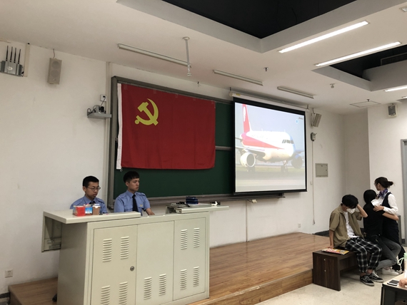 “每一个传奇的背后都隐藏着坚守和执着。”首先登场的第三组学员们用话剧表演《生死备降》拉开了故事会的序幕,讲述了“英雄机长”刘传建临危不惧、勇担重任,在危急关头用坚守与执着保护了每一位乘客的故事。