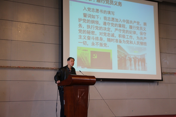 冯如党建工作坊启动仪式在庄严的《国际歌》中正式开始,首先是由陈志英教授为党建工作坊学员讲授党课。陈老师从入党誓词讲起,借对入党流程的展示,引出了党员的八项义务的概括和具体的阐释,通过生动的事例阐述了“学习”、“模范”、“贡献”、“守纪”、“忠诚”、“批评”、“群众”、“牺牲”等党员的八项义务。