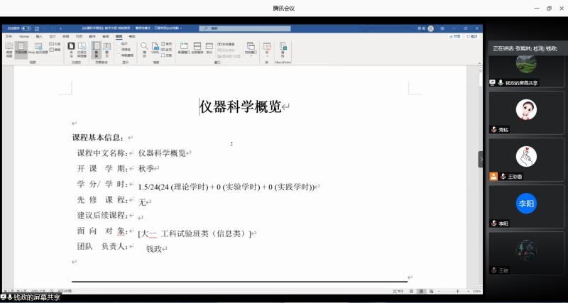 本次会议在前期2020级工科试验班(信息类)培养方案调整评审的基础上,针对信息大类培养方案中新增1门限选核心通识课《仪器科学概览》教学大纲的评审。课程负责人钱政就课程教学大纲中的教学目标、课程目标、课程内容、基本要求及学时分配、教学方法、课内外教学环节及基本要求、成绩判定方法等方面进行详细阐述。评审专家进行了深入的讨论,在成绩判定方法、教学内容设计的合理性、衔接性以及仪器与信息类之间的联系提出了建设性意见和修改建议。后续,课程负责人将根据专家评审意见完善教学大纲,学院将针对完善后的教学大纲组织进一步评审。