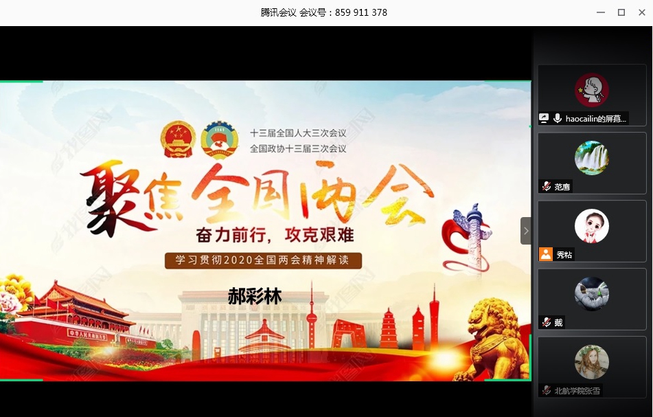 首先,支部党员郝彩林同志带大家领学了“两会”相关内容和精神。她从全国政协十三届三次会议和十三届全国人大三次会议工作报告出发,依次对两会报告中各部分的内容进行了详细的介绍。参会党员代表围绕“两会”学习主题进行交流发言,大家表示,今年全国两会,适逢决胜全面建成小康社会、决战脱贫攻坚收官之年和“十三五”规划收官之年,又是在疫情防控常态化的特殊背景下召开,意义非同一般。大家认为,政府工作报告和全国政协常委会工作报告催人奋进,将认真学习贯彻两会精神,扎实推进好学院重点工作,为学校学院发展贡献自己的理念。