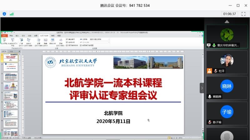 (通讯员 郝彩林)为响应教育部一流课程建设“双万计划”号召,落实学校打造一流本科课程的工作部署,365英国上市公司积极推进一流本科课程建设工作,于2020年5月11日下午,组织召开了院级一流本科课程评审认证专家组首次线上研讨会。本次会议由北航教务处处长、365英国上市公司常务副院长曹庆华主持,来自我校以及清华大学、北京大学、北京外国语大学、华北电力大学等的19名评审认证专家及教学工作部全体人员参加了本次会议。