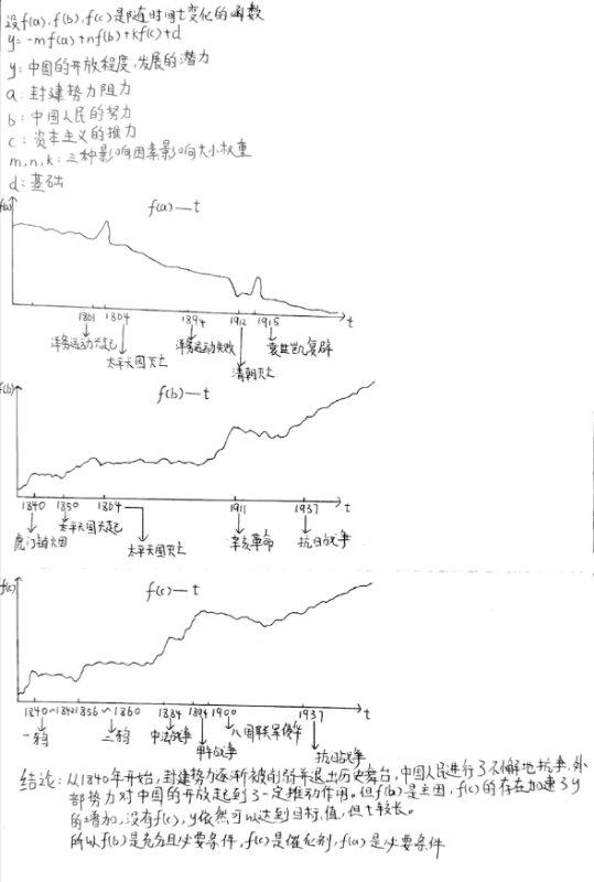 精准授课的教学效果还表现在许多学生的思维视野、逻辑能力的提升。如守锷书院的凌希通在听了张树焕老师关于“如何看待殖民主义历史二重性”的讲授后,运用理工科专业数学建模思维做了“中国近现代社会发展函数图”,指出中国近现代史社会的发展(用Y表示)是诸多因素综合作用的结果,其中封建势力的衰退(用a表示)是必要条件,中国人民的奋斗和努力(用b表示)是充分必要条件,西方外来侵略(用c表示)是催化剂,因而得出Y=-mf(a)+nf(b)+kf(c)+d(其中,d为近代中国社会发展的起点,m、n、k是影响因数);这就将中国近现代史的发展规律用函数的形式做了形象展现。邱靖懿在听了杜松石老师关于“如何理解‘革命’与如何铭记历史”后对“革命”作出了自己的解释,他指出“矛盾逐步激化,产生真正的化学反应,生成新的物质的过程叫革命。历史的气息,吹过谁的耳边,谁就会得到助力,谁能听到时代的低语,谁就能走向光明的未来”,而祁圣曦同学则发自内心地感悟到“其实千万人的牺牲,我们也不过20分钟就能讲完。我们现在可能正经历着历史的一行字,甚至并没有机会出现在历史书上。所以铭记很难,但很重要。”