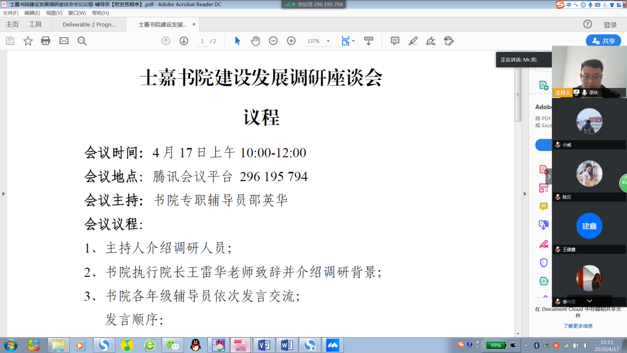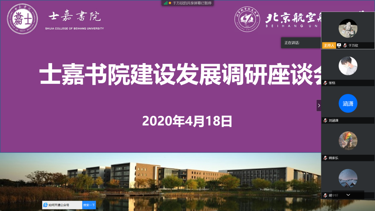 (通讯员 陈贝)围绕2020年学校工作要点,总结书院三年建设发展经验,士嘉书院于4月17日至19日,以视频会议形式,召开7场书院建设发展调研座谈会,调研对象有书院历届辅导员、2019级学生干部及学生代表,共同研讨书院办学过程的优秀经验、存在的问题及改进建议。