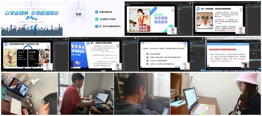 书院持续推进“大国战疫”系列专题思政课的建设与实施,由马院张正清老师讲授第三讲《以专业精神引导疫情舆论》。课程围绕疫情防控期间的舆论动向展开讨论,阐述了舆情治理在检验国家治理体系和治理能力现代化中的重要地位,提出了专业精神是科学知识传播与交流的底色。教师通过雨课堂与学生交流互动,鼓励学生在疫情防控期间对于舆情信息进行思考甄别,传递了批判思维和专业精神,并启示学生将方法沿用到专业选择和大学规划等环节,做一名有专业知识、更有专业精神的大学生。授课结束后,学生通过分组讨论对讲授内容进行热议,纷纷表达了理性对待疫情舆论和运用批判思维进行专业选择的理解与感悟。