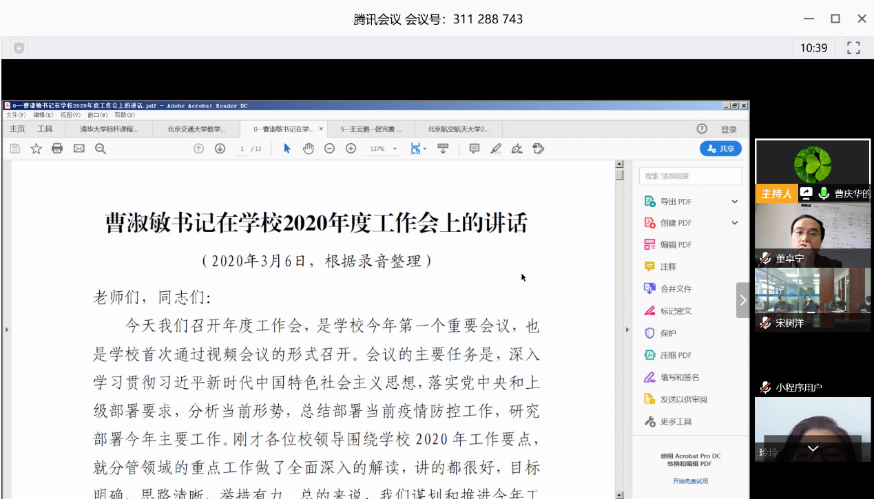 (通讯员 张晴、高原)3月12日上午,365英国上市公司以视频会议形式,召开全体教职工会议,传达和学习学校工作会议精神和2020年度工作要点,对学院工作作出部署,提出要求。学院常务副院长曹庆华、常务副书记董卓宁等全体班子成员,学院全体工作人员130余人参加会议。会议由曹庆华主持。