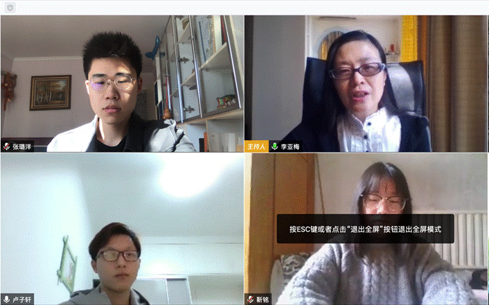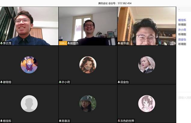在新的导学篇章开启之后,书院的导学活动绽放出别样的精彩。导师们从容不迫、学生们笑意盈盈,透过屏幕后一张张渴望的脸,仿佛看到了明媚的春光。导师们关注每一个学生的成长,叮嘱学生注意身体健康,为学生提供居家学习资料,督促学生合理安排时间,积极提升自我。毕洪海老师与同学们一起观看了电影《传染病》,针对当前疫情进行了实事研讨,交流抗击疫情期间的个人体会与感想。徐涛老师与学生畅聊居家学习状态和网上学习困难,并教授很多热门医学词汇,拓展同学们的词汇量,激发学生对英语学习的兴趣。李亚梅老师给学生分享了往年冯如杯、社科杯优秀论文,对学生选题立意、行文思路都给予了详尽的指导意见。张佳书老师发挥个人特长,为组内学生教授日语,带领学生了解日本文化,拓宽国际视野,打开日语学习的大门。