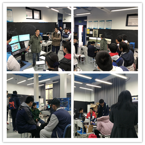 报告后,在北京招生组的安排下,十一学校师生一行参观了位于二号教学楼的中法工程师学院实验室。通过走进课堂现场观摩,亲自操作体验,与大学生交流实验项目等活动,让来访学生提前感受到了北航大学生的学习与科研状态。