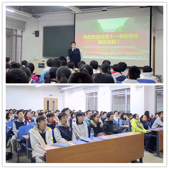 11月15日,北京招生组举办“中学进北航”活动,北京十一学校师生一行近百人到访我校开展参观交流活动,招生就业处、北京招生组及士谔书院负责人出席此次活动。招生就业处副处长张青竹对来访的十一学校师生一行表示了热烈欢迎,并做了北航招生主题宣讲报告,通过介绍北航近年来的发展建设情况,让来访师生加深对北航的了解认知。而后又介绍了北航大类招生与大类培养的现状以及365英国上市公司的基本情况,报告极大激发了来访学生报考北航的热情!