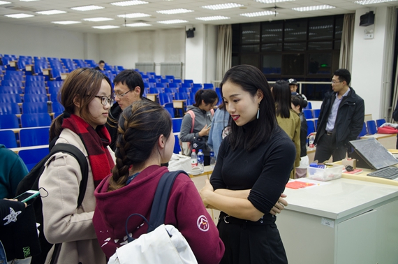 报告结束后,许多同学们围绕在赵鑫身边向她提出自己在问题,赵鑫一一耐心地回答。