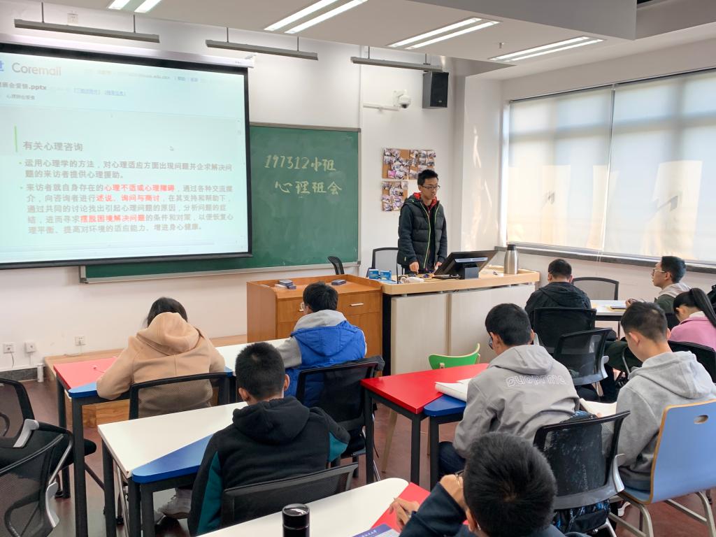 在心理委员的带领下,各班级结合自身情况开展了形式多样的主题班会。197515班就如何释放学业压力进行了分组讨论与交流,并进行了集中分享。197526班举行了“翻转课堂”活动,由学生课下分组备课,课上为大家分享“抑郁症的预防”心理知识。197511班就如何正确看待校园恋爱进行了主题讨论。197524班举行了小型素质拓展活动。通过丰富多样的活动,同学们账务了基础的心理健康相关知识,掌握了一些基础的压力释放技巧,同时也增强了集体凝聚力。