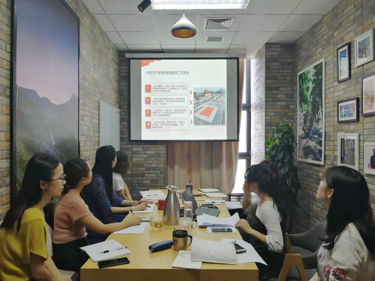 首先,王赛男带领大家学习了学校6月教职工“学习日”活动学习内容指导意见中的相关内容,包括:习近平总书记在“不忘初心、牢记使命”主题教育工作会议上的重要讲话精神,明确要牢牢把握守初心、担使命,找差距、抓落实的总要求;通过认真研读《中国共产党党员教育管理工作条例》,明确加强党员教育,增强“四个意识”、坚定“四个自信”、做到“两个维护”,增强党性,提高素质的重要性;通过对《中国共产党支部工作条例(试行)》的学习,明晰高校党支部的基本任务及组织生活,充分认识到发挥高校党支部对于筑牢学生理想信念根基,落实立德树人根本任务,保证教学科研管理各项任务完成的重要性;结合本职工作,深入学习了《北京高校教师师德考核办法》、《北京高校教师师德考核办法》、《新时代高校教师职业行为十项准则》文件精神,提高了全体人员在师德师风方面的认识。