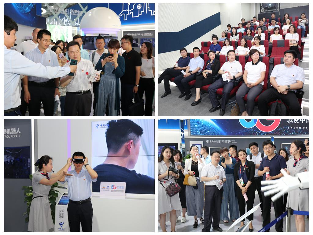 座谈会后,共建支部一起参观中国电信5G展馆。党员们在5G展馆讲解员的带领下,分别从5G未来城、5G云课堂、5G·AI巡逻机器人、5G云游戏、5G梦生活、5G游世园、5G·AI机器人等10个展区依次进行参观,了解了中国电信把5G元素充分融入未来,把VR、MR、AI机器人等多种方式与5G完美结合,带党员们领略了万物互联的未来世界。党员们纷纷表示,通过参观学习,对国家的电子通讯事业有了更直观的了解和深入的认识,极大增强了民族自信心和自豪感。