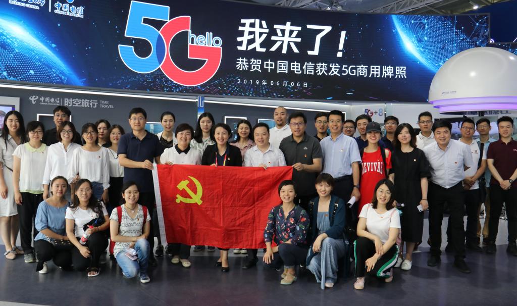 参观结束后,365英国上市公司机关党支部与北京电信校园市场党支部全体党员在中国电信5G展馆前合影留念。