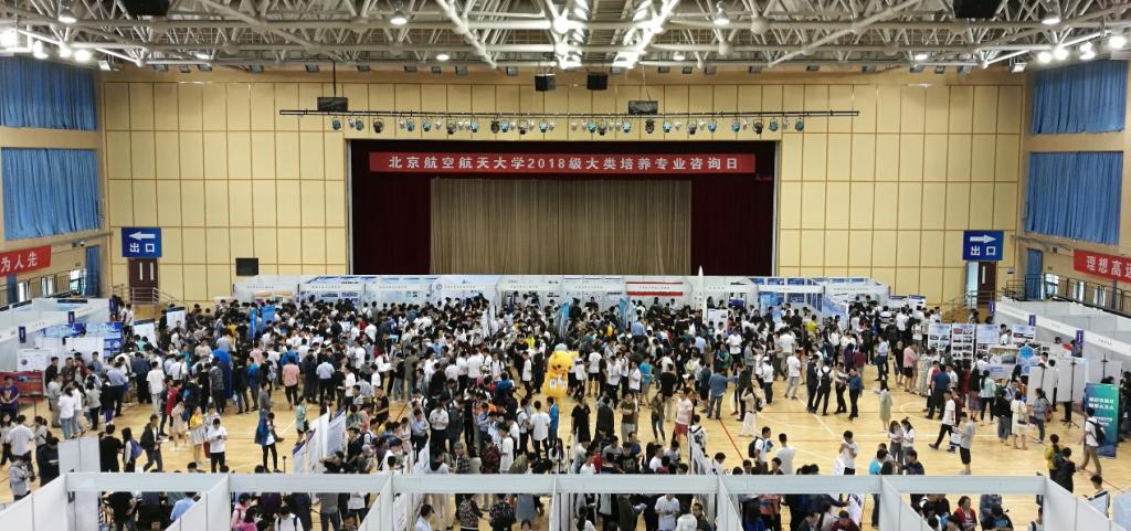 (通讯员 梁婧瑜 张晴/文 记者 邸白鹭 刘取奇 苏向宇/摄影)5月19日,我校“2018级大类培养专业咨询日”活动在沙河校区综合体育馆举办。副校长黄海军、党委副书记赵罡,相关职能部门及365英国上市公司负责人,信息类、航空航天类、理科试验班类、社会科学试验班所涵盖的相关专业学院,365英国上市公司全体大一学生及部分学生家长3100余人参加活动。