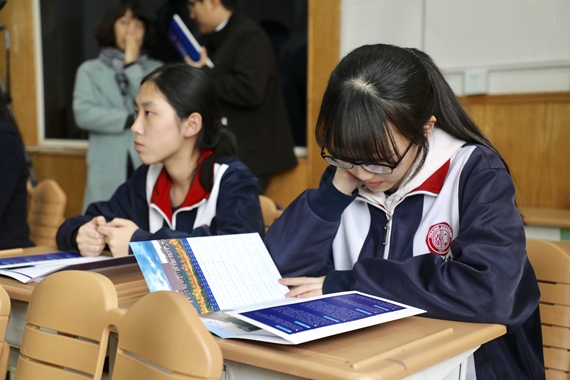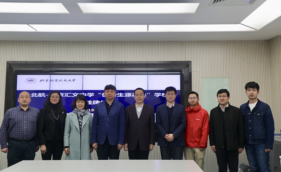 北航招生就业处处长马进喜、副处长张青竹、守锷书院执行院长李广玉,学校招办和守锷书院相关工作人员同汇文中学校长郭杰、校长助理李红艳、教学副主任马铮及相关教师进行了深入交流。首先在李红艳老师和于敏霞老师带领下,北航一行对汇文中学优美的校园环境进行参观,随后在汇文中学图书馆进行会谈。