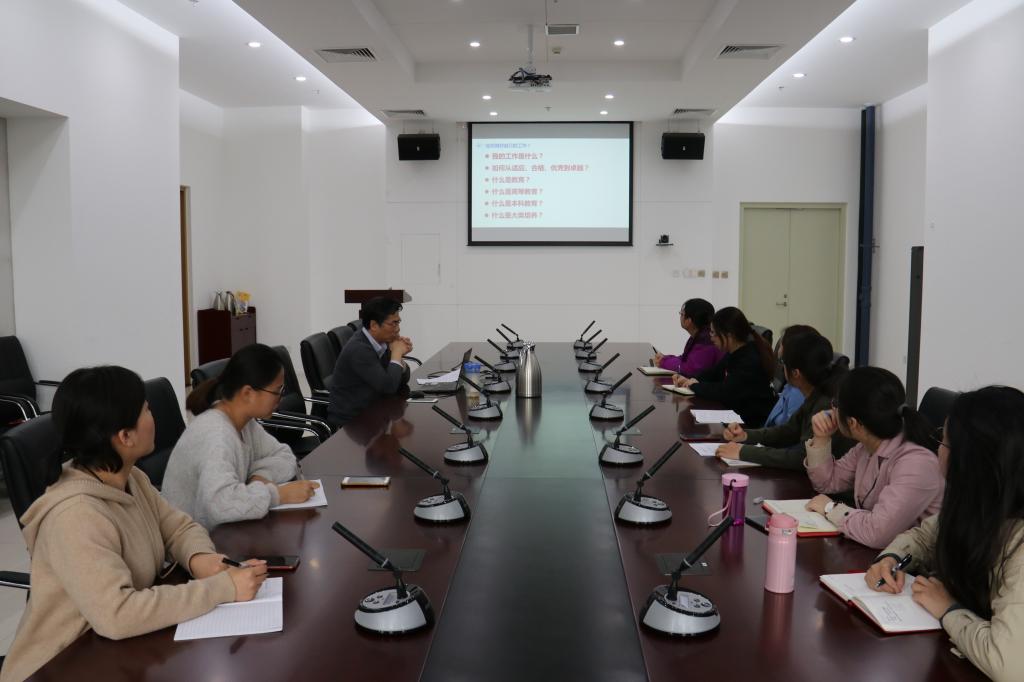 交流中,曹院长首先提出了六个问题:我的工作是什么?对待工作如何从适应、合格、优秀到卓越?什么是教育?什么是高等教育?什么是本科教育以及什么是大类培养。与会人员就以上六大问题进行了深入思考,充分发表了自己的观点并简述了入职以来的工作概况,对工作内容的思考以及对学院课程体系、学生培养、综合管理的认识。