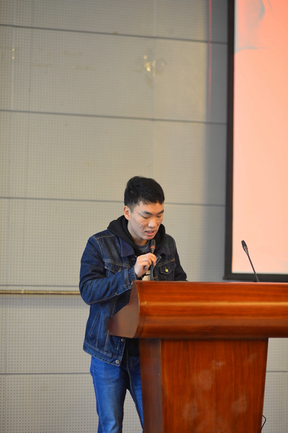 大会第一项,优秀干事表彰,由导员吴艳松宣读优秀干事名单。各部门部长与优秀干事在台上合影。