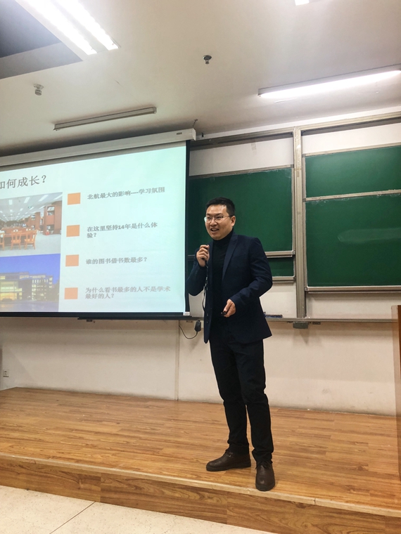 “聚焦科创,共话金融”活动第一场于2018年12月12日19:00在沙河校区J3-106举办。首场讲座以“大学创业与学术训练”为主题,旨在为北航学生提供创新创业与学术科研方面的实用经验,为同学们答疑解惑。本次讲座由2005级北航人文社会科学学院经济学系优秀毕业生肖凤军主讲,作为创业与学术达人,主讲人从自身经历出发,与同学们分享自己在创业与科研道路上的心得体会。
