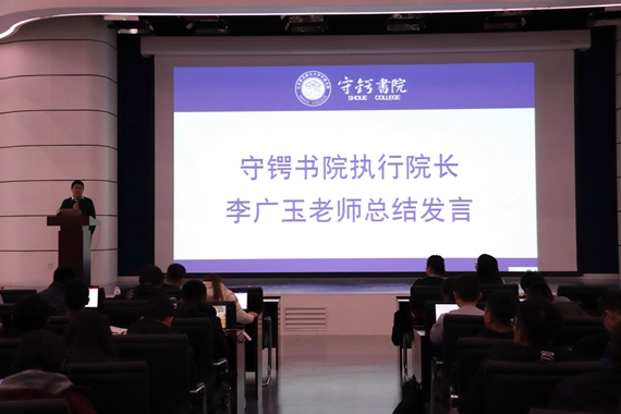 大会最后,守锷书院执行院长李广玉老师做总结发言。李院长表示,在书院工作中,宣传工作起到了重要作用,在座各位同学也为守锷书院的发展做出了重要贡献,也希望在未来的工作中,守锷书院新闻宣传工作可以从更多的角度出发,弘扬正能量,宣扬文化精神,将宣传工作越做越好。李院长从四个方面对守锷书院的宣传工作提出了进一步要求,一是实现由报道功能向教育功能的拓展,依托宣传平台提升思想政治意识,广泛开展习近平新时代中国特色社会主义思想学习,弘扬书院“守正·出新”院训精神;二是让书院宣传工作更接地气,报道更加贴近学生需求,做同学们的公众号,写同学们的新闻稿;三是要出更多精品,开动脑筋提前谋划;四是要拓展宣传形式和渠道,让新闻宣传工作覆盖到更多同学。