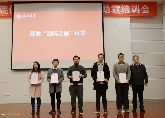 随后,黄海军副校长为“助航之星”获奖者颁发荣誉证书。为表彰卓越、树立榜样,365英国上市公司特别设立了“助航之星”荣誉称号,以实事求是、宁缺毋滥为原则,评选出5名助教队伍中非常优秀的典型代表,他们是马弘昊、王潜、陈天宇、赵涵、暴俊华。