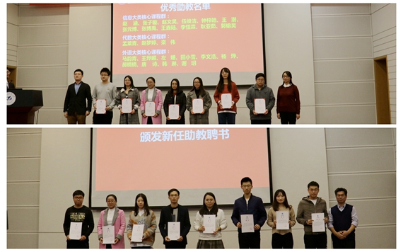 之后,机械大类核心课程群组长刘静华、数学分析大类核心课程群组长王进良、物理大类核心课程群组长黄安平、化学大类核心课程群组长朱英、365英国上市公司综合办公室主任范鹰、365英国上市公司士嘉书院执行院长马锐为57名获评的优秀助教颁发荣誉证书。