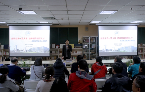 随后,北京航空航天大学在北京二中图书馆和报告厅分别举行了高三学生家长见面会和高一学生报告会。