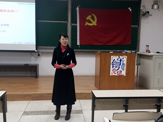 本次党课由北航马克思主义学院的彭付芝教授讲授。伴随着雄壮的国际歌歌声,守锷书院的第二次党课开讲。彭老师以“坚持一国两制,实现祖国完全统一”为题目,带领同学们认真了解学习了党提出的“和平统一,一国两制”的方针。