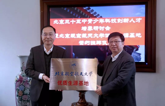 马进喜处长介绍了北航的人才培养、师资力量、学科特色等情况,并对学校大类招生和大类培养政策、“教授进中学”项目、“优质生源基地”建设等进行了简要说明,期待未来三十五中向北航输送更多的优秀人才。朱建民校长表示,将三十五中确定为北航“优质生源基地”学校,是对三十五中的充分认可,两校将继续加强合作,共同培养更多高素质的人才。