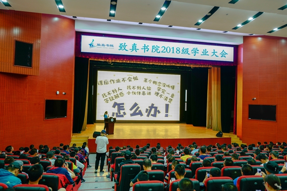 2018年9月16日下午,致真书院在咏曼剧场举行2018级学业大会。致真书院院长王惠文,执行院长闵敏,专职辅导员魏茜、毋艺臻,学业助理丁贝贝,17、18级半脱产辅导员及18级全体同学参加了大会。大会由专职辅导员毋艺臻主持。