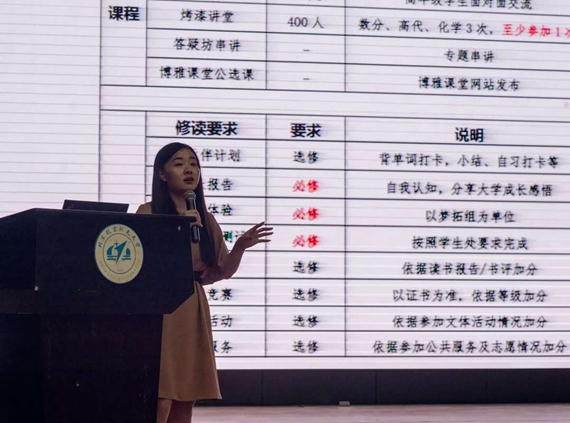 大会第四项,魏茜老师讲解了《致真书院2018级博雅课程实施大纲》,同时,为确保同学们能尽快适应大学学习,就书院学业预警方案做了详细介绍。