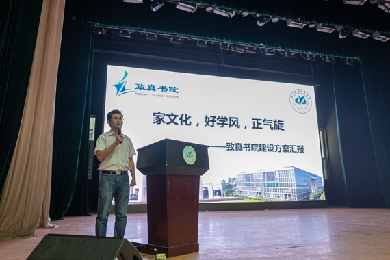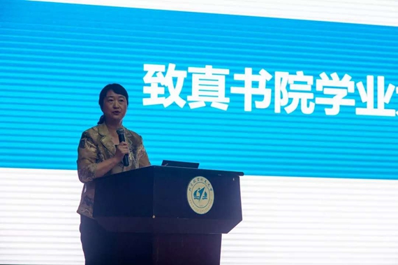 大会第二项,闵敏院长了介绍书院文化和内涵,归纳并总结了如何享受书院的学习生活。闵院长赠言给全体18级同学“致真少年,格物致知,求真笃实,不负韶华。希望全体18级同学能充实的度过大学生活的每一天。”