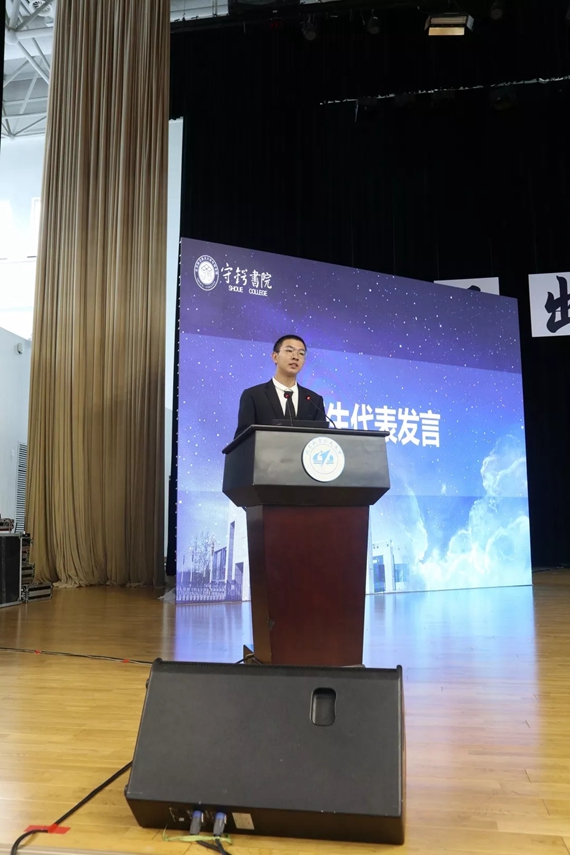 最后,18级新生代表刘宇曦同学、17级代表罗醴同学分别进行发言。刘宇曦同学表示,要在大学生活中认真学习不断奋斗,成为一名优秀的守锷书院学子。罗醴同学作为老生代表,在发言中希望各位18级同学要学习屠守锷精神,不断进取,守正出新,空天报国。