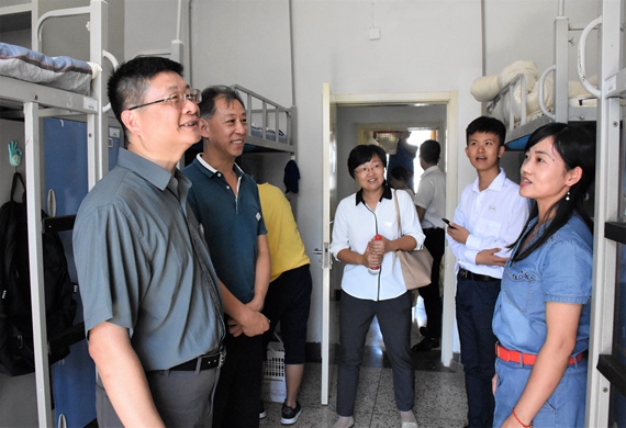 29日下午杨超院长与陈志英总导师来到学生宿舍对入住新生进行走访慰问,了解新生食宿条件,询问新生对校园的满意度,鼓励学生们以积极的心态迎接崭新的学习和生活。