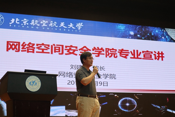 最后,网络空间安全学院院长刘建伟教授在学科发展历程、优秀师资力量、建设目标及规模方面对学院的概况进行了介绍。接着就本科生招生及培养进行了详细说明,并向同学们介绍了学院的学科分布、学分要求、核心课程以及课程模块设计理念。