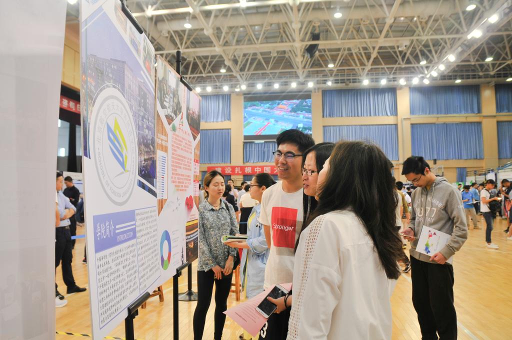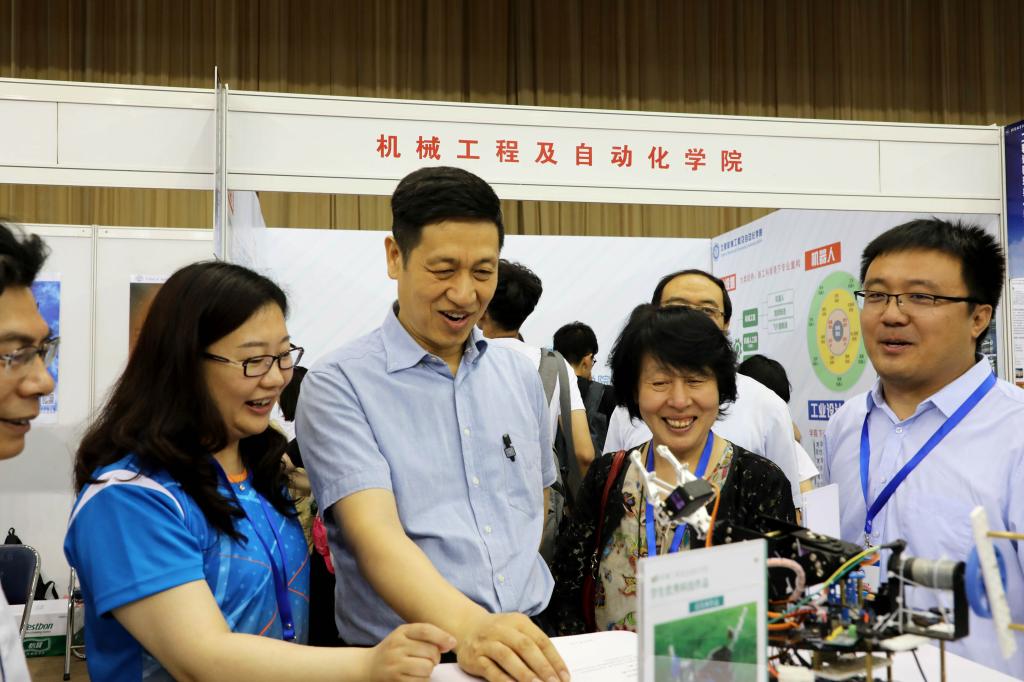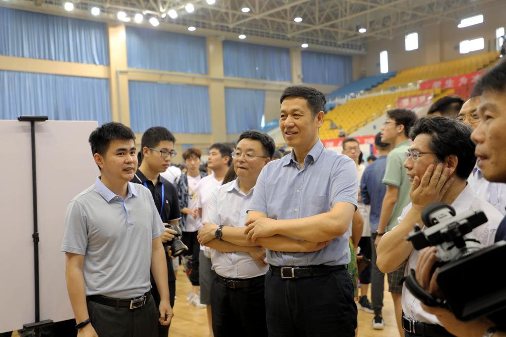 在专业学院展示区,各个学院通过展板、海报、实物等方式介绍专业、推介学院;有的专业学院布置了科技作品展示区,无人机、赛车、生物医学产品等科技作品吸引大一同学驻足观看;体育馆两侧大屏幕上轮流播放各专业学院宣传片,展示着各学院的风采。