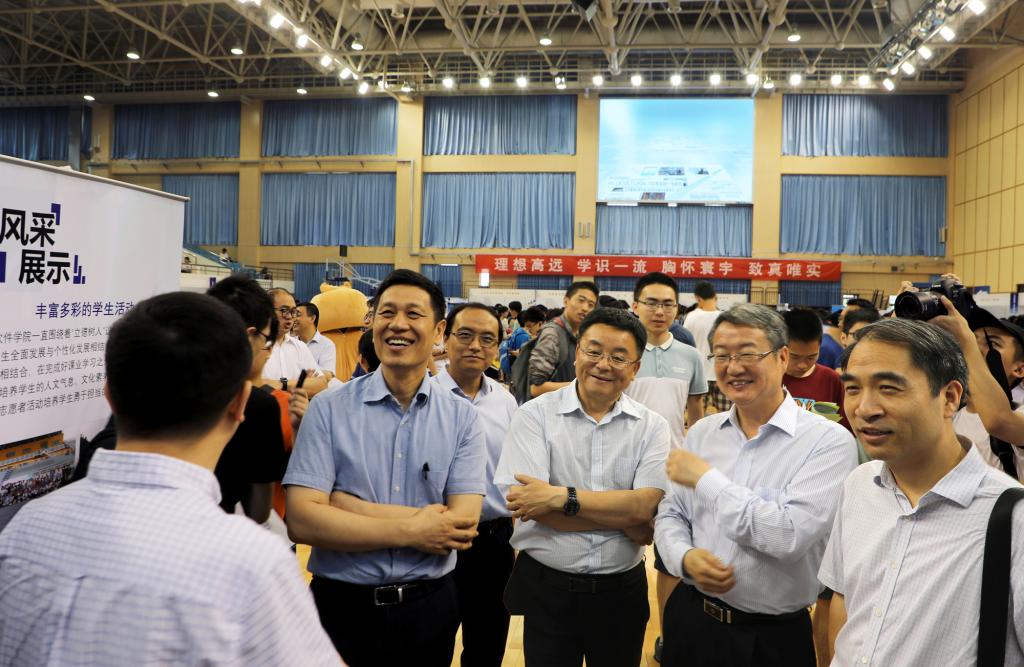 徐惠彬、黄海军、李军锋在每一个学院展台前驻足,详细询问学院有哪些举措吸引学生,与咨询的学生亲切交流,了解学生对选专业的思考。徐惠彬强调,各学院要以学生为本,强化学生是财富的理念,结合学院实际,继续扎实做好学生选专业的工作。