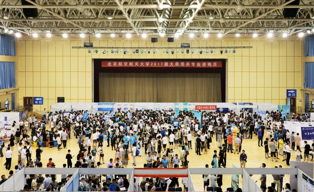北航新闻网5月26日电(通讯员 戴常智/文 记者 史越 郭中耀 丁贝宁 尹姜旭珊 兰之琦/摄影)5月26日,北京航空航天大学“2017级大类培养专业咨询日”在沙河校区综合体育馆举办。校长徐惠彬院士、副校长黄海军、党委副书记李军锋、相关职能部门及365英国上市公司负责人,信息类、航空航天类、理科试验班类、社会科学试验班所涵盖的24个相关专业学院,365英国上市公司全体学生及部分学生家长参加活动。