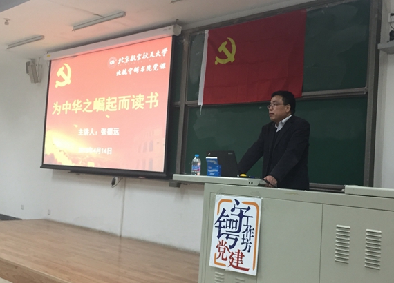 (通讯员 熊卓凡)4月14日晚上七点整,守锷党建工作坊在3号教学楼211教室举行了本学期的第二次党课,守锷书院院长张德远教授担任本次主讲教师,以“为中华之崛起而读书”为主题,深入讲解并鼓励工作坊各位青年担负时代责任、提高工作才能,加深思想觉悟,不辜负青春,把握当下,为中华之崛起而读书。