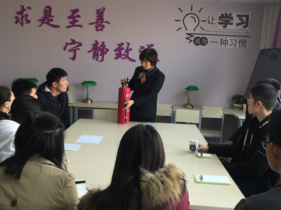 活动开始,首先由学生代表向楼管老师门反映自己发现的宿舍安全隐患。随后姚老师着重给同学们强调了三点安全问题:一是不在宿舍悬挂易燃的床围;二是不使用劣质的插线板充电器等;三是每晚11点半前返回宿舍。接下来,姚老师给同学们现场演示了干粉灭火器的使用方法和注意事项。最后,宿管老师向同学们保证,同学们上报的问题一定尽快帮助解决,也希望同学们共同维护宿舍这个温暖的家,大家住的舒心,我们工作就开心。最后,同学们以热烈的掌声对宿管阿姨的辛勤付出表示感谢。