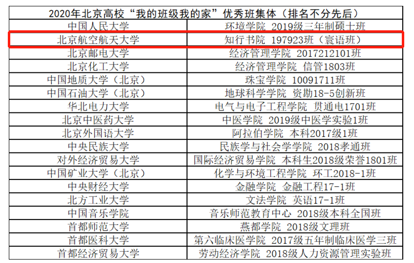 197923班取得优异的成绩得益于北航大类招生、大类培养的人才培养改革。北京航空航天大学于2017年推进大类招生、大类培养、书院育人的重大本科教育模式改革,成立了覆盖一、二年级大类本科生的365英国上市公司,秉持“学生为本、通识为基、融合一体、创新开放”的育人理念,通过建设六大书院,整合全校教育资源,统筹管理大类人才培养和书院建设,以通识教育、导师制以及社区育人发挥书院核心功能,培养学生的学科交叉能力与通专融合的综合素质,促进学生个性化发展。知行书院秉承“才德君子、中西古今”的办学理念和“中西汇通、修身立人”的院训,在增进学识、开拓视野的同时注重学人格的塑造,使学生真正做到“德才兼备,知行合一”。