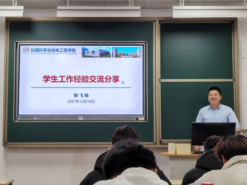 (通讯员 康睿卿)12月10日晚,传源书院第一次学生干部培训暨朋辈座谈活动在三号楼104教室开展,书院邀请仪器科学与光电工程学院21级博士研究生张飞杨进行经验分享,为到场学生干部解答学生工作的相关问题。书院兼职辅导员王鹏、各大班班委、志愿实践中心负责人等约30人参加。